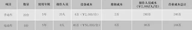 手動搬運(yùn)車與電動搬運(yùn)車實(shí)際消耗比較(8臺電動搬運(yùn)車相當(dāng)于20臺手動搬運(yùn)車)