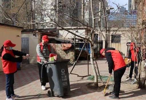 上午9點,志愿者們身穿志愿服務紅色馬甲,手拿勞動工具一路興致高昂地來到省四建小區。經過與物業溝通勞動內容后,大家迅速行動起來,有的拿笤帚清掃小區主干道上的煙頭、紙屑,有的拖著垃圾桶收集清掃的垃圾,大家不怕臟、不怕累,爭先恐后,一片熱火朝天的景象,不一會兒一條干凈整潔的道路就呈現在小區居民面前。
