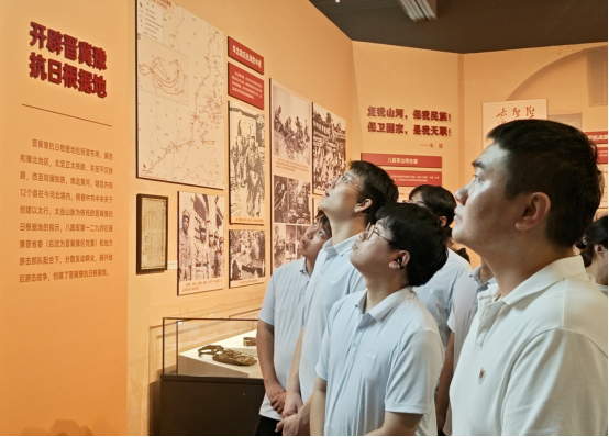 7月23日,分公司黨總支書記賈銀建帶領(lǐng)20余名職工步入河北省博物院“河北抗戰(zhàn)圖片檔案展”展廳,大家的目光隨著歷史脈絡逐步移動。在泛黃的電文手稿、磨損的軍用地圖、定格戰(zhàn)斗瞬間的黑白照片前,不時有人駐足凝視、低聲交流。當看到100多人的八路軍小部隊午夜分工突襲,最終以零傷亡繳獲了敵人一個騎兵連的戰(zhàn)略物資時,安全科侯麗霞拿出手機記錄細節(jié):“先輩們在極其艱苦的條件下能夠想出破敵良策,我們?nèi)缃衩鎸ぷ麟y點更應積極探索破解方法,干出新成效。”來到“根據(jù)地建設(shè)”展區(qū),財務科李召燕指著減租減息和大生產(chǎn)運動的圖片感慨道:“這與我們當前各科室聯(lián)動推進項目工作的目的相同,要團結(jié)一心才能推進項目經(jīng)營管理取得更好成效。”參與活動的黨員干部紛紛表示,將把這份浸潤心靈的感悟轉(zhuǎn)化為“扎根崗位破難題,聚焦指標抓落實”的實際行動,勇挑重擔。青年職工也鄭重立下“傳承偉大抗戰(zhàn)精神,立足崗位強本領(lǐng)”的承諾,把工作做深做細做扎實,用實干詮釋責任。