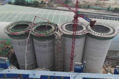 水泥礦粉及儲存庫由兩個連體庫組成,庫壁高35.05米、內徑15米,滑模施工在7月下旬正式開始。業主為了搶回疫情耽誤的工期,要求庫壁滑模必須在9月30日以前完成。項目部積極面對,多措并舉,克服了工期緊張、雨季施工以及滑模質量控制等諸多困難,最終按照業主要求提前完成了滑模任務,得到了業主和監理的一致好評。