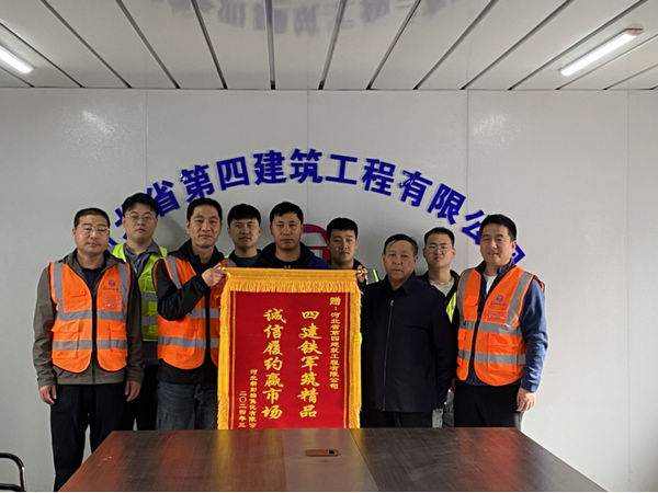 3月29日上午,河北普陽鋼鐵集團新彭楠焦化有限公司副總經理李文秀、新彭楠焦化項目負責人王磊,來到河北四建三分公司新彭楠焦化項目部會議室,感謝項目部春節不停工保送煤,高質量地完成節點任務,并鄭重地將寫有“四建鐵軍筑精品 誠信履約贏市場”的錦旗送到正在項目檢查的分公司經理李書偉的手中。三分公司副經理劉贊敏、項目部經理甄雄浩等一同參加。