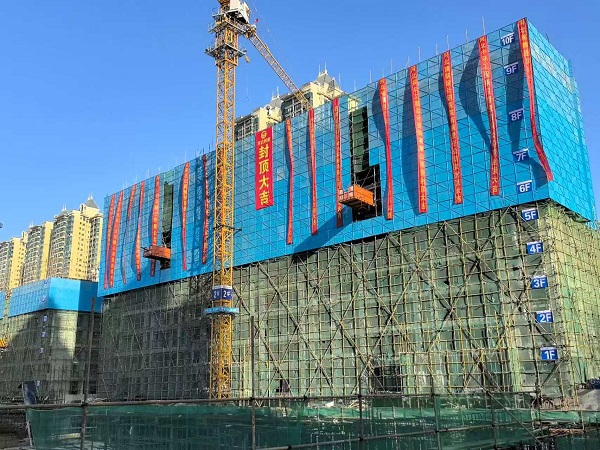 自項目啟動以來,項目部始終堅持“高起點、高標準、高效率、高質量”原則,結合工期要求,細化分解施工任務,嚴格落實精細到日到時的施工進度計劃。為加快進度,項目部高效利用人員、材料、機械設備,在合理搭配各工種作業的基礎上,靈活調配鋼筋工、木工等作業人員,實現了各工種交叉作業有條不紊。材料管理人員緊密結合現場實際,每日核查材料余量,及時完善采購計劃,確保了所需鋼筋、模板等建筑材料供應到位。同時,項目部通過塔機檢測和吊鉤可視化組合,在智能化管理平臺實時查看回傳畫面,避免盲吊,提高了效率,動態調度26臺塔吊。在全體建設者晝夜不停的努力下,用時94天完成D區2號樓地上主體結構,實現項目首棟回遷樓封頂。
