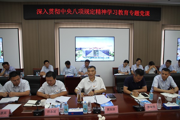 賈鳳鎖首先向大家傳達(dá)學(xué)習(xí)了6月27日省委書記倪岳峰就深入貫徹中央八項規(guī)定精神學(xué)習(xí)教育講授的專題黨課精神,隨后他緊密聯(lián)系自己的思想認(rèn)識和工作實(shí)際,從五個維度切入,以詳實(shí)案例、深刻見解,結(jié)合集團(tuán)實(shí)際發(fā)展需求,為與會人員帶來一場別開生面、干貨滿滿的黨課。一是深刻領(lǐng)會開展深入貫徹中央八項規(guī)定精神學(xué)習(xí)教育的重大意義。這是鞏固深化主題教育和黨紀(jì)學(xué)習(xí)教育成果、縱深推進(jìn)全面從嚴(yán)治黨的重要舉措;是密切黨群干群關(guān)系、鞏固黨的執(zhí)政基礎(chǔ)的必然要求;是加強(qiáng)干部作風(fēng)建設(shè)、實(shí)現(xiàn)企業(yè)高質(zhì)量發(fā)展的有力保障。開展深入貫徹中央八項規(guī)定精神學(xué)習(xí)教育,就是要促使集團(tuán)黨員干部以更加優(yōu)良的作風(fēng),積極投身到集團(tuán)確定的各項目標(biāo)任務(wù)中,勇于擔(dān)當(dāng)、積極作為,努力開創(chuàng)集團(tuán)高質(zhì)量發(fā)展新局面。二是準(zhǔn)確把握習(xí)近平總書記關(guān)于加強(qiáng)黨的作風(fēng)建設(shè)重要論述的核心要義。本次學(xué)習(xí)教育,為全體黨員配備了《習(xí)近平關(guān)于加強(qiáng)黨的作風(fēng)建設(shè)論述摘編》這本學(xué)習(xí)書籍,賈鳳鎖結(jié)合工作實(shí)際談了自己的學(xué)習(xí)體會。三是認(rèn)真防范企業(yè)貫徹中央八項規(guī)定精神潛在的風(fēng)險和問題。要防范形式主義損害企業(yè)發(fā)展質(zhì)量、官僚主義削弱企業(yè)凝聚力、享樂主義影響黨員干部形象、奢靡之風(fēng)造成國有資產(chǎn)流失等四類風(fēng)險。四是全面汲取深入學(xué)習(xí)貫徹中央八項規(guī)定精神的成效和經(jīng)驗。集團(tuán)各單位聚焦重點(diǎn)任務(wù),多元創(chuàng)新學(xué)思踐悟教育模式,扎實(shí)推進(jìn)學(xué)習(xí)教育走深走實(shí)。特別是今天參會的單位學(xué)習(xí)教育成效有目共睹。比如:四建公司通過抓好領(lǐng)導(dǎo)班子學(xué)習(xí)示范,進(jìn)一步引領(lǐng)廣大黨員干部深化對中央八項規(guī)定精神的領(lǐng)會,凝聚發(fā)展共識,上半年市場開發(fā)87.2億元,同比增長83%。五是切實(shí)把學(xué)習(xí)教育成果轉(zhuǎn)化為推進(jìn)集團(tuán)高質(zhì)量發(fā)展的強(qiáng)勁動力。突出整治整改工作重點(diǎn),全力推動學(xué)習(xí)教育走深走實(shí);聚焦領(lǐng)導(dǎo)班子作風(fēng)建設(shè),鍛造做強(qiáng)做優(yōu)做大企業(yè)“領(lǐng)航團(tuán)隊”;圍繞生產(chǎn)經(jīng)營中心工作,激活促進(jìn)高質(zhì)量發(fā)展“動力源泉”;直面“急難險重”攻堅任務(wù),筑牢完成年度目標(biāo)任務(wù)“攻堅堡壘”。課堂上,大家認(rèn)真聽講、做好筆記,積極參與互動交流。賈鳳鎖希望以此次學(xué)習(xí)教育為契機(jī),強(qiáng)化政治擔(dān)當(dāng),保持戰(zhàn)略定力,深刻把握中央八項規(guī)定精神的時代要求,堅決糾治“四風(fēng)”頑疾,弘揚(yáng)真抓實(shí)干作風(fēng),團(tuán)結(jié)帶領(lǐng)全體干部職工以昂揚(yáng)姿態(tài)、務(wù)實(shí)行動,共同書寫集團(tuán)高質(zhì)量發(fā)展的嶄新篇章!