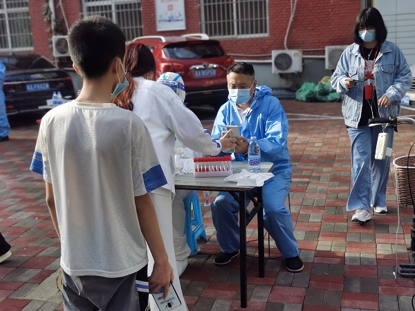 “沒問題,馬上到”,孫志華一邊接電話,一邊穿衣服往外走。一路小跑很快來到小區核酸檢測點,只見大家已經有秩序地排成兩隊,拉開安全距離,耐心地等待著。