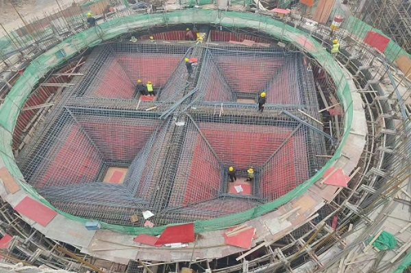 面對延誤的工期和困難,項目管理團隊不抱怨、不氣餒,八月中旬與分公司相關部門共同策劃,細化施工計劃,優化施工工序,明確各關鍵節點的完工時間。為提高施工速度,由原先的2個筒倉同時滑模流水作業,改為4個筒倉同時滑模平行作業。項目部優化增配施工人員和機械設備——施工人員由原先的100人增加到150人,實行24小時輪班制,確保現場施工不間斷;現場設置了三臺塔吊和兩處材料加工區,還增加了汽車吊迅速將材料吊運至各個施工點,多臺機械設備的同時作業,大大提高了工程整體進度。9月25日,6個筒倉滑模到頂,比甲方規定的工期提前了15天。在工程進度調度會上,項目部得到了甲方武安市裕華鋼鐵有限公司總經理鄭雷生的肯定:“工期緊、任務重,可你們不僅干得快,還干得好!”